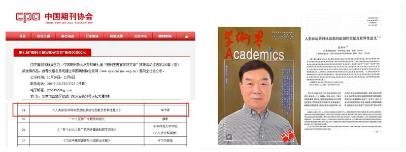 部长袁祖社教授的文章“人类命运共同体思想的原创性贡献及世界性意义”入选。